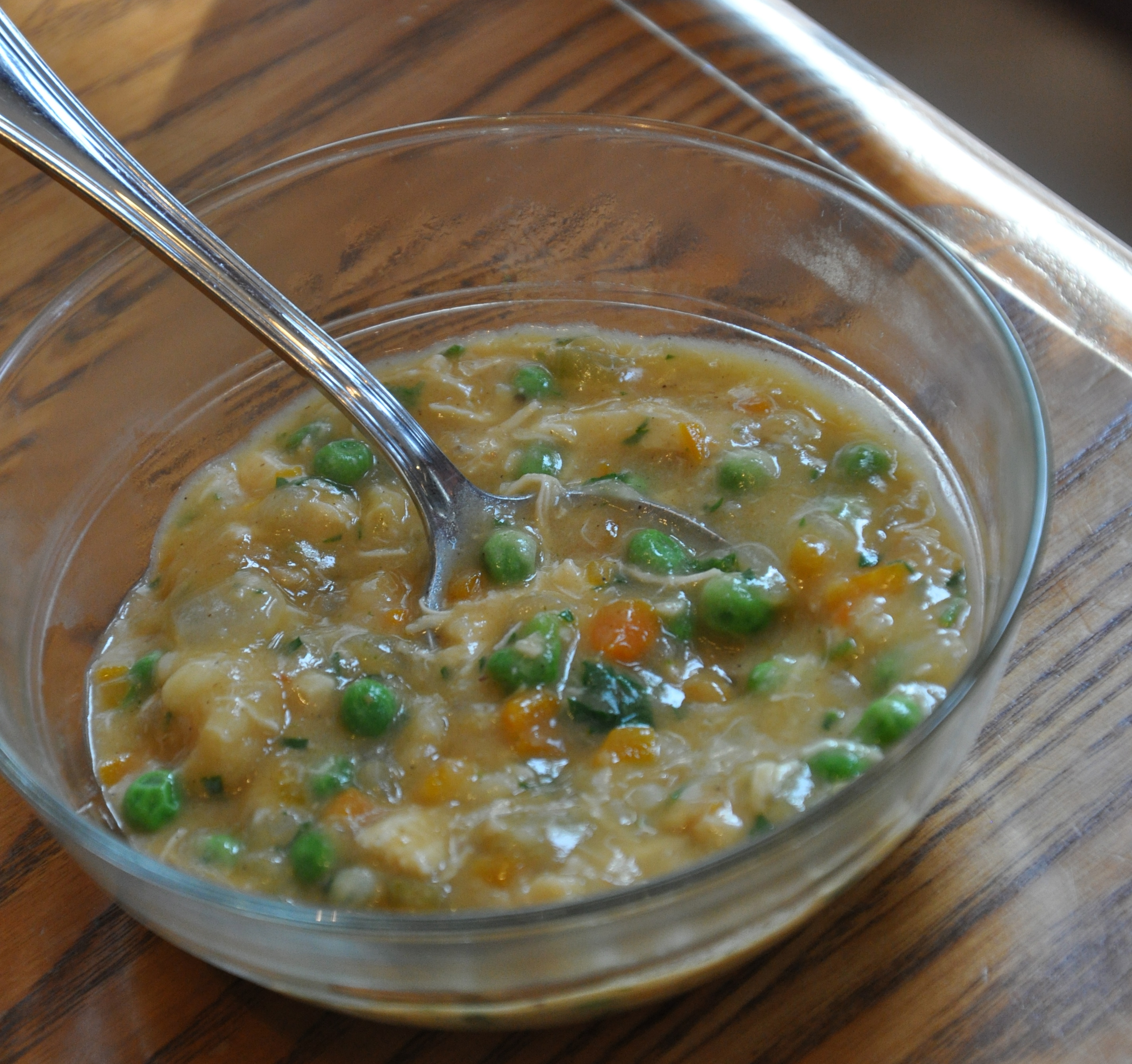 5. Stir shredded chicken, peas, and parsley into stew, and season with salt and pepper to taste. (Adjust stew consistency with additional hot broth as needed.) Cover and cook on high simmering (or transfer stew to Dutch oven and bring to simmering over medium heat).