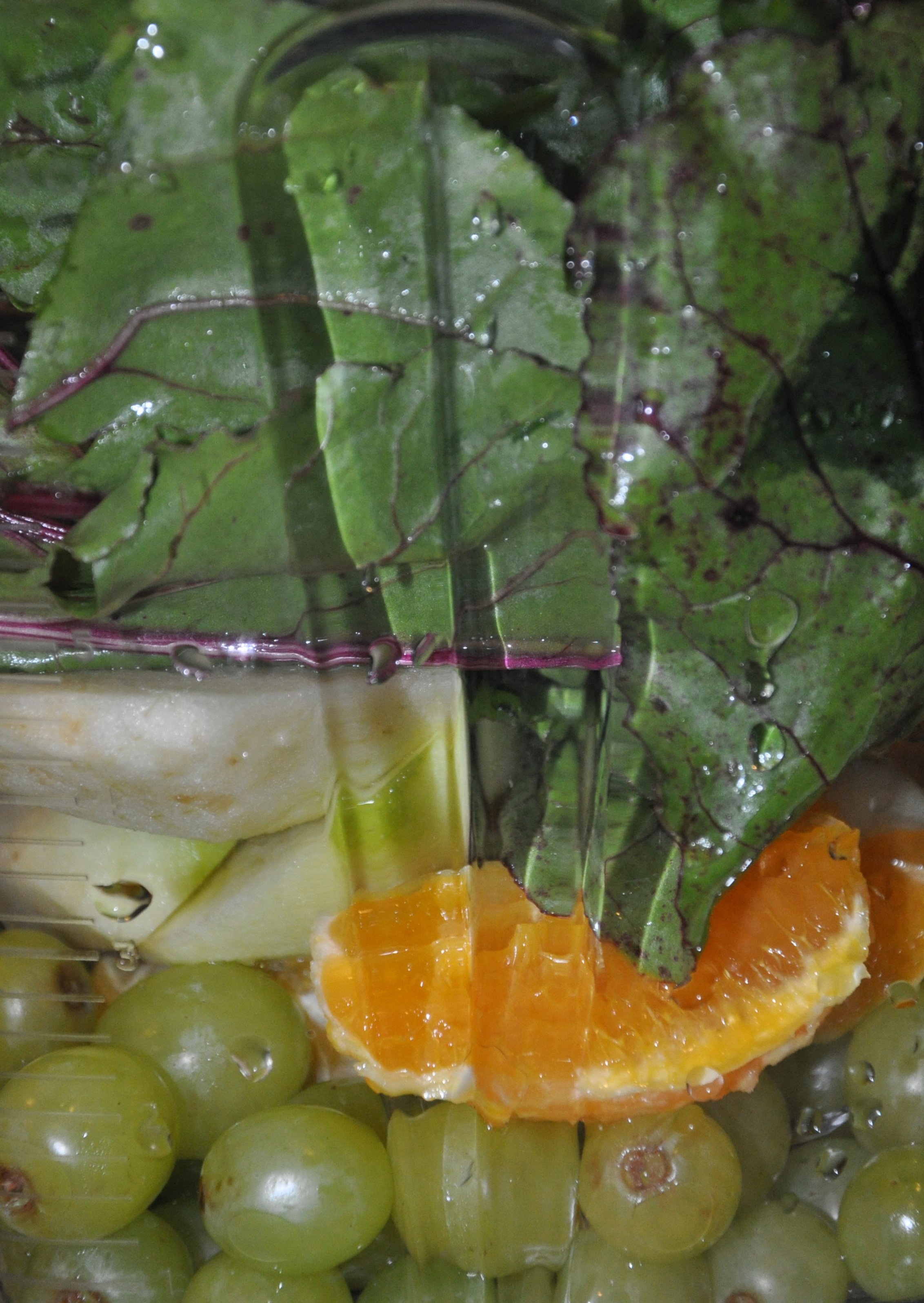 Farm Fresh Salad Mix (Swiss Chard & Beet Leaves), Grapes, Orange, & Granny Smith Smoothie