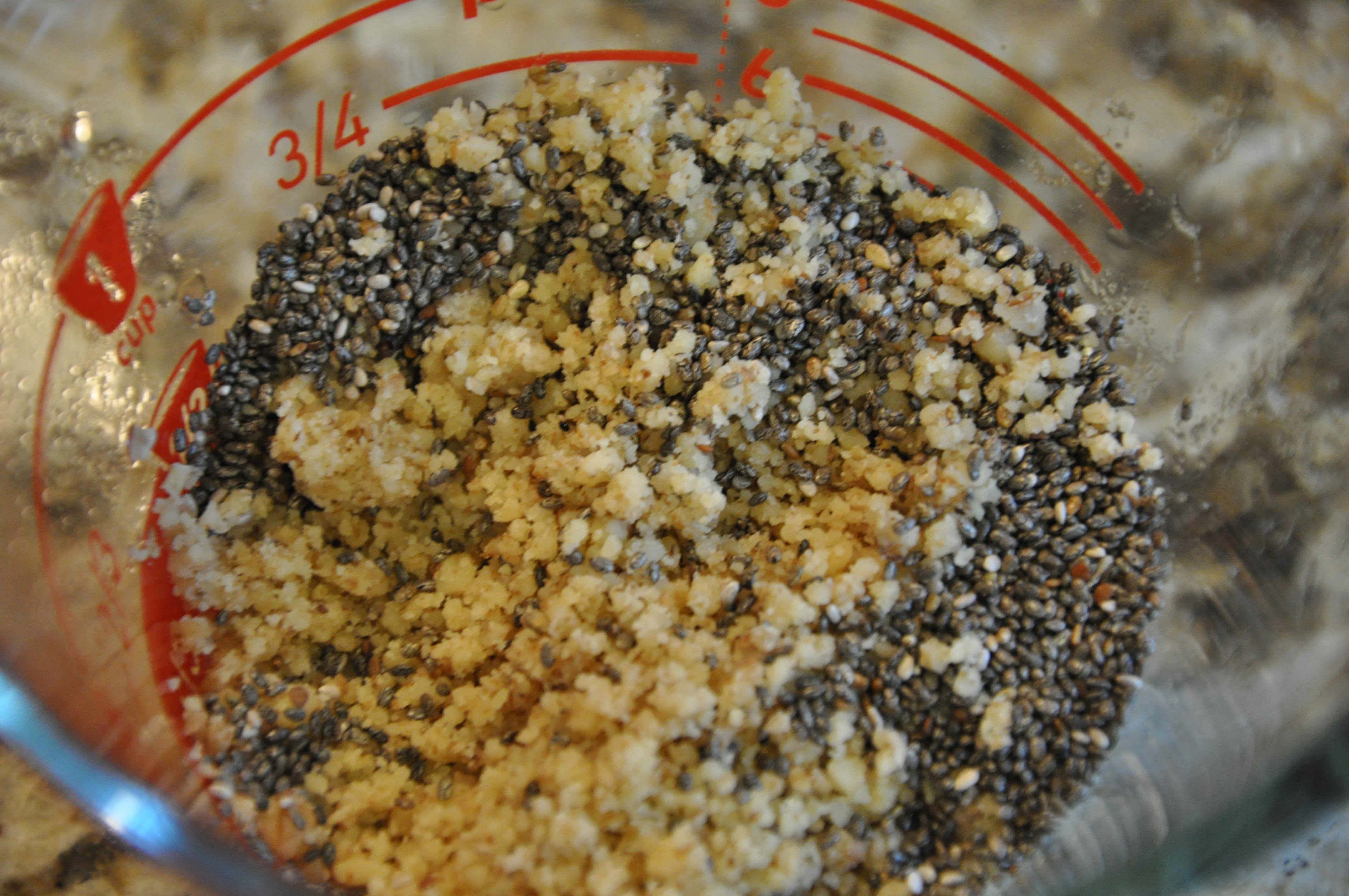 In a separate bowl I add a heaping tablespoon of Shaklee fiber, 4 tablespoons of ground walnuts, 4 tablespoons of flaxseed meal, and 1 teaspoon of chia seed.